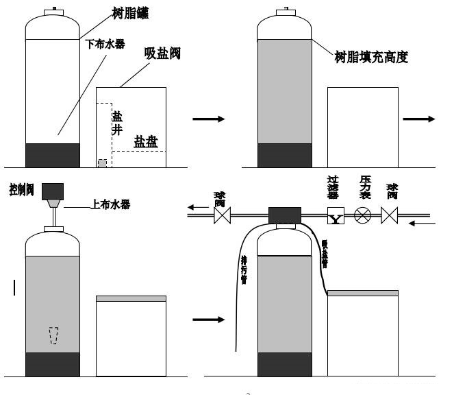 2、鹽罐應靠近樹脂罐,并盡量縮短吸鹽管的長度。