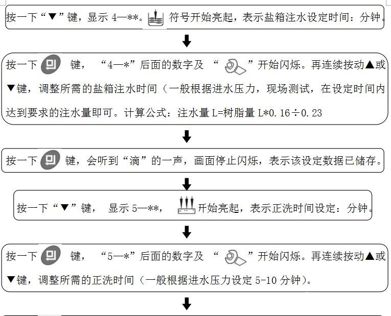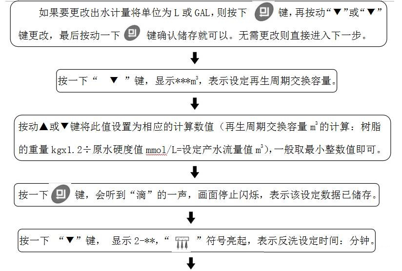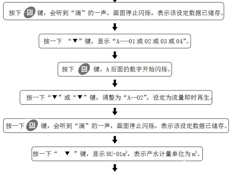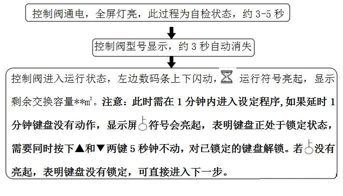 注:因控制閥電子版更新?lián)Q代比較快,程序設(shè)定內(nèi)容不一定完全與本說明書相符,如出現(xiàn)缺項程序,可直接進入下一步。