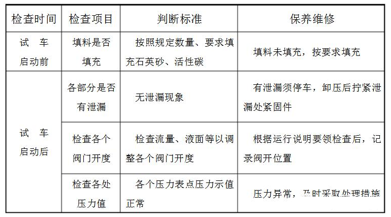 為了縮短定期檢查的停車時間,在檢查人員和檢修工人人數(shù)許可的情況下,盡量與水站其它設備裝置的檢查同時進行。檢查時如發(fā)現(xiàn)有異常,一定要及時處理,并給予解決。