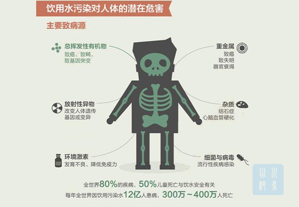 此外,據(jù)世界衛(wèi)生組織報道,由于飲用不良水質(zhì)而導致的消化道疾病、傳染病、結(jié)石、皮膚病、癌癥、婦科炎癥等疾病達50多種,現(xiàn)代醫(yī)學證明,人類 死亡原因有80%是由于環(huán)境污染、各種有害物質(zhì)在體內(nèi)存留所造成的,而各種有害物質(zhì)進入體內(nèi)不被正常排出,有80%的疾病是飲用水造成。
